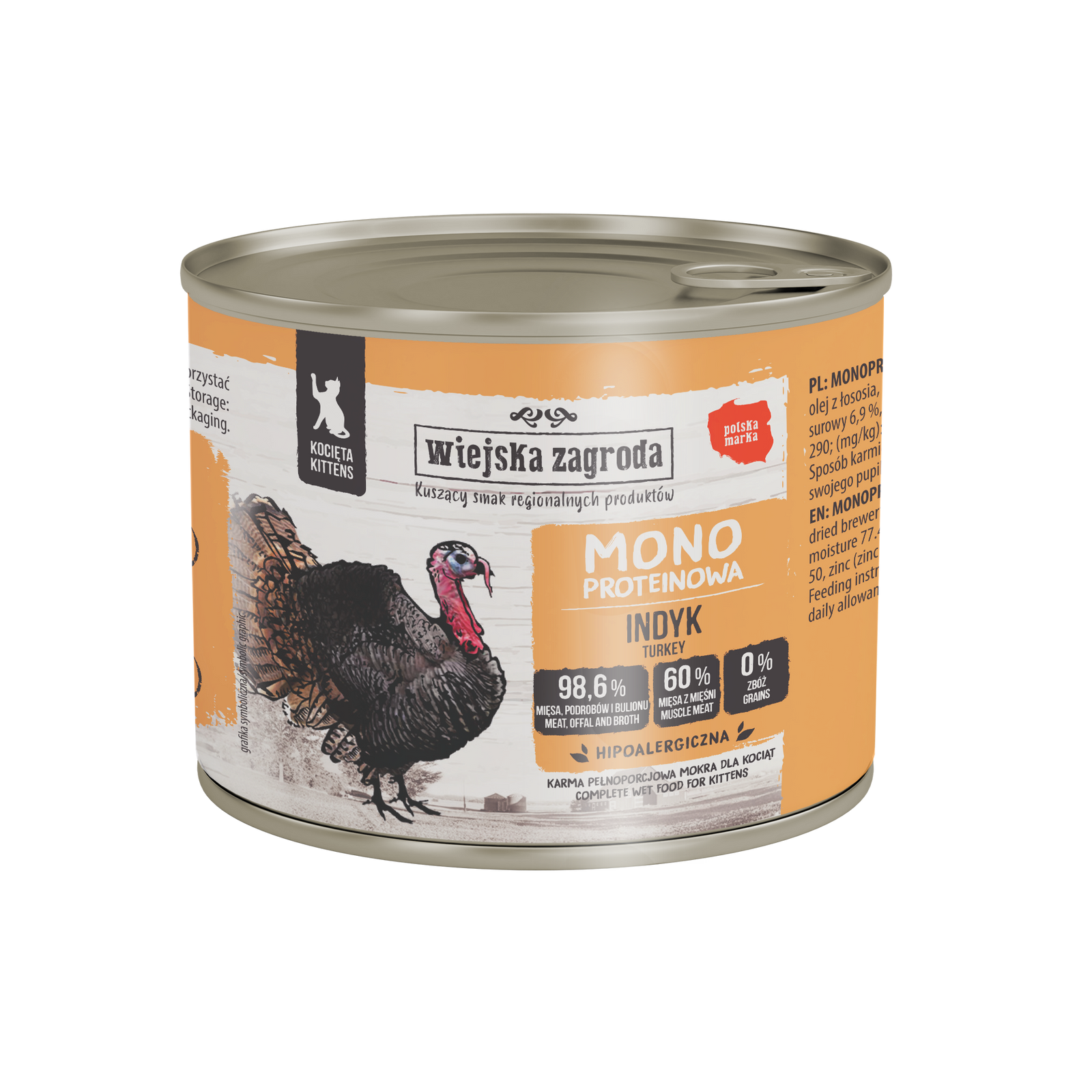 Wiejska Zagroda mokra karma dla kota Indyk dla kociąt 200g