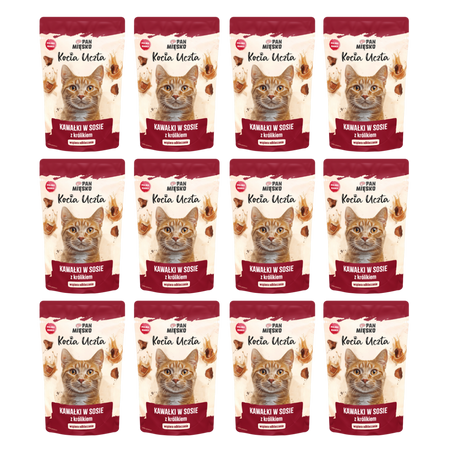 Zestaw Karma mokra dla kota Pan Mięsko Kocia Uczta Kawałki w sosie z królikiem (dorosły) 85g x 12 szt.