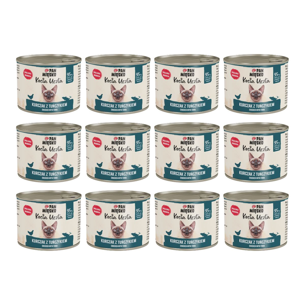 Zestaw Karma mokra dla kota Pan Mięsko Kocia Uczta Kurczak z tuńczykiem (dorosły) 200g x 12 szt.
