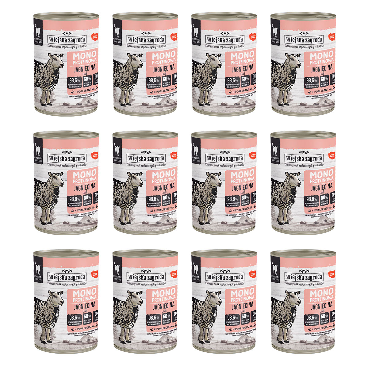 Zestaw Karma mokra dla kota Wiejska Zagroda Jagnięcina monoproteinowa 400 g x 12 szt.