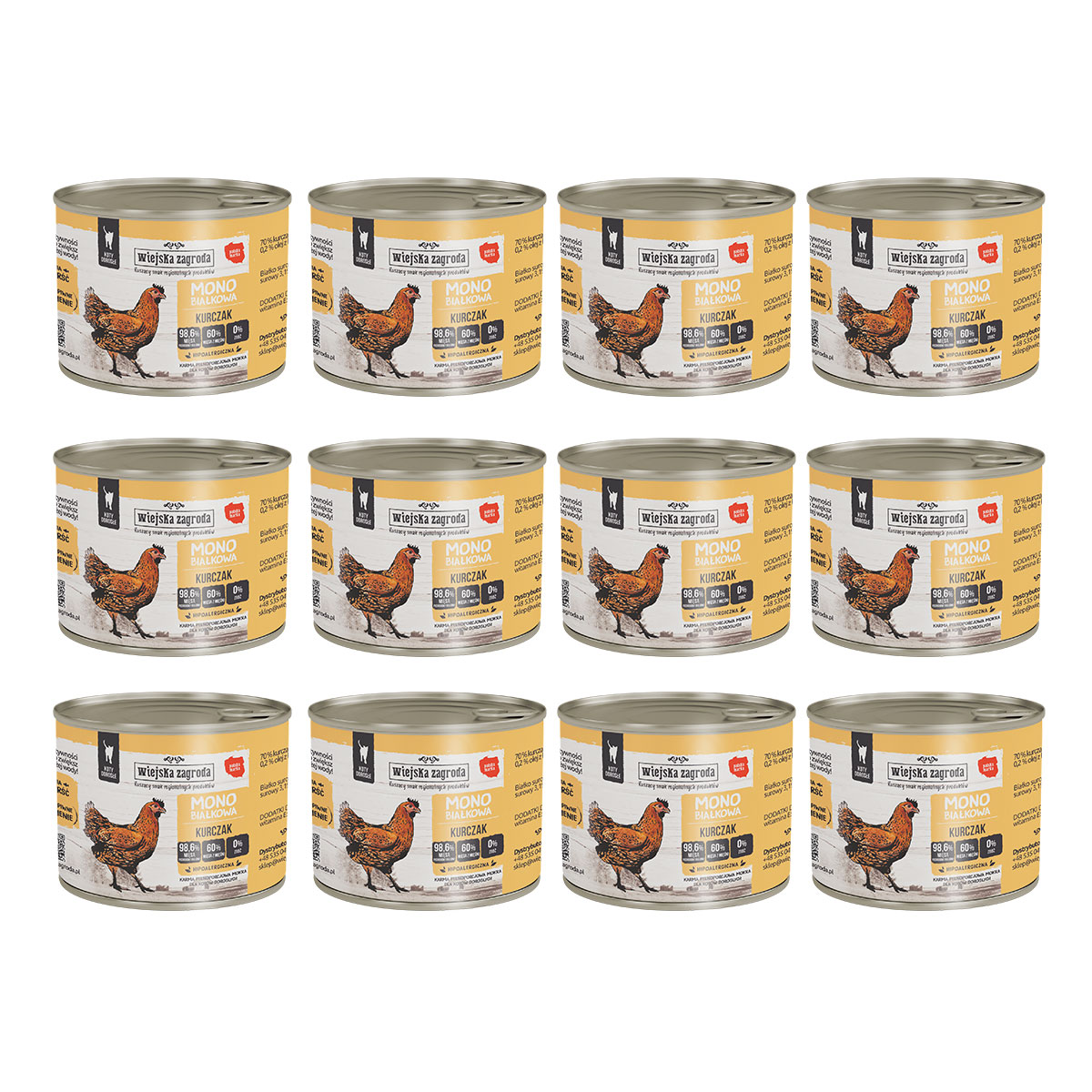 Karma mokra dla kota Wiejska Zagroda Kurczak monoproteinowa 200 g (12 szt.)