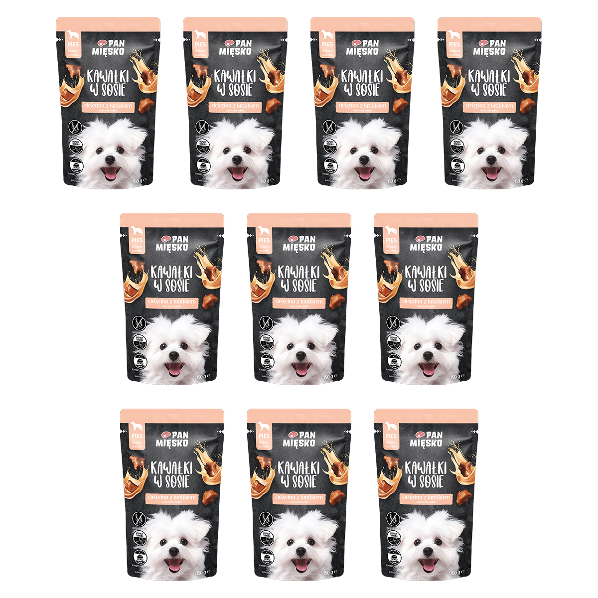 Zestaw Karma mokra dla psa Pan Mięsko Kawałki w sosie Cielęcina z królikiem (dorosły) 150 g x 10 szt.